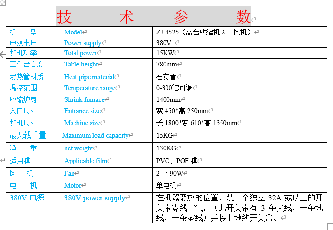 10. 高台收缩机采用石英发热管,寿命长,发热快,省电;