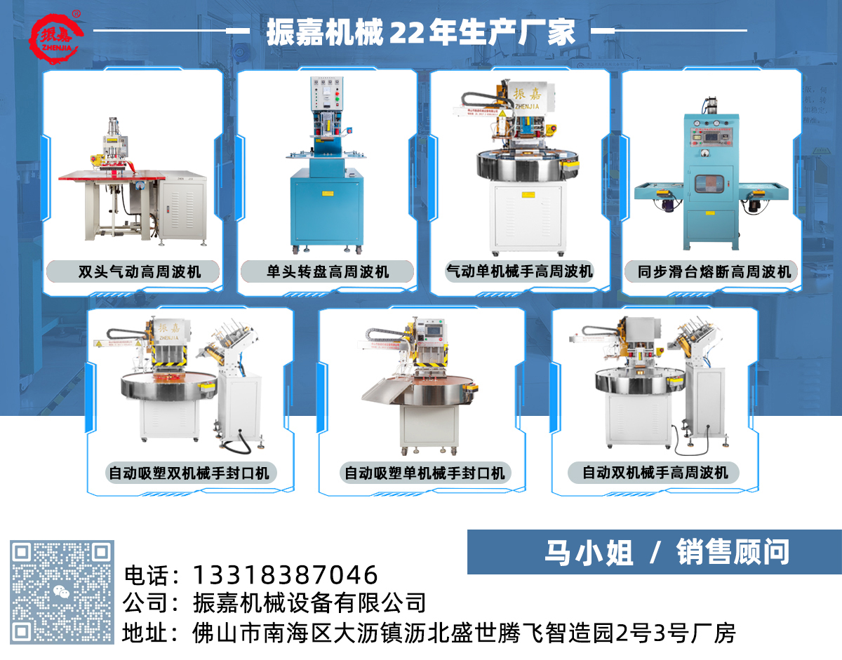 型号为ZJ-8K-RB,此机装有进口双管防火花保护装置,对高周波模具及生产产品起到很大的保护作用,可以把模具打火机率降低95%,是一款转盘式高周波机,可以单人操作,节约人工。机器由振嘉机械设备有限公司高周波生产厂家专业制造,机器质量已通过欧盟CE质量出口检测和ISO9001机器质量检测