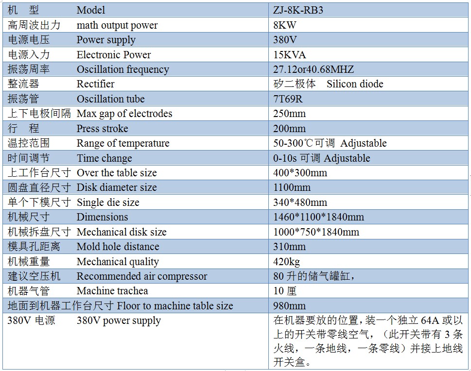 圆盘三工位吸塑包装机型号为ZJ-8K-RB3,此机装有进口双管子防火花保护装置,对高周波模具及生产产品起到很大的保护作用,是一款三工位圆盘转的高周波机,可以单人操作,节约人工;由振嘉机械设备有限公司高周波生产厂家专业制造,机器质量已通过欧盟CE质量出口检测,ISO9001机器质量检测;并对客户的样板提供免费打板打样,传授产品生产整过程工序及提供生产方案。